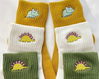Dino Socks Dinosaur Embroidery Cotton Socks Women Socks Letterbox Gift Gsocks