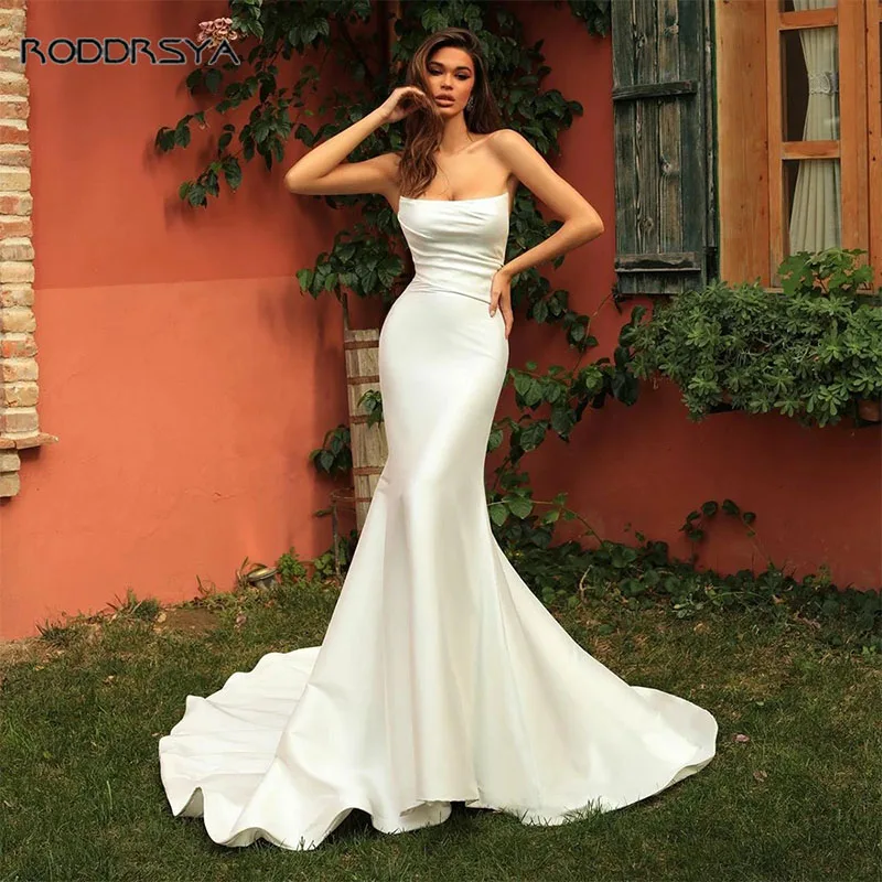Strapless Mermaid Satin Wedding Dresses For Bride Summer Sexy Backless Court Train Simple Bridal Party Gowns Robe De Mariee Wedding Dresses Aliexpress